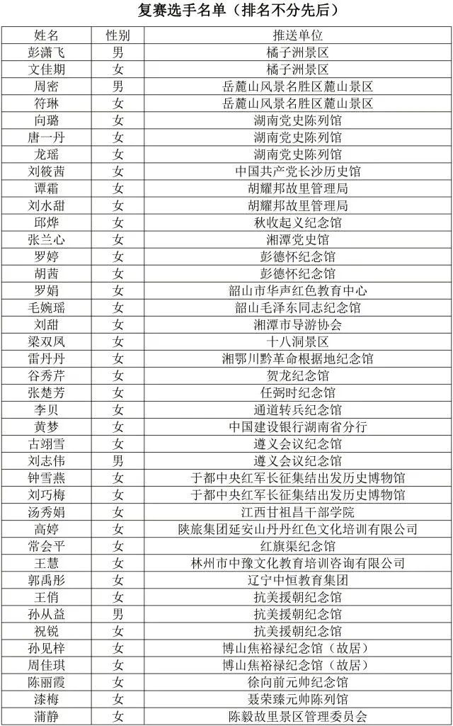 伟人故里,红色传承。11月17日,第三届“韶峰杯”全国红色故事讲解大赛组委会公布了进入复赛环节的选手名单,共有40名选手入围。