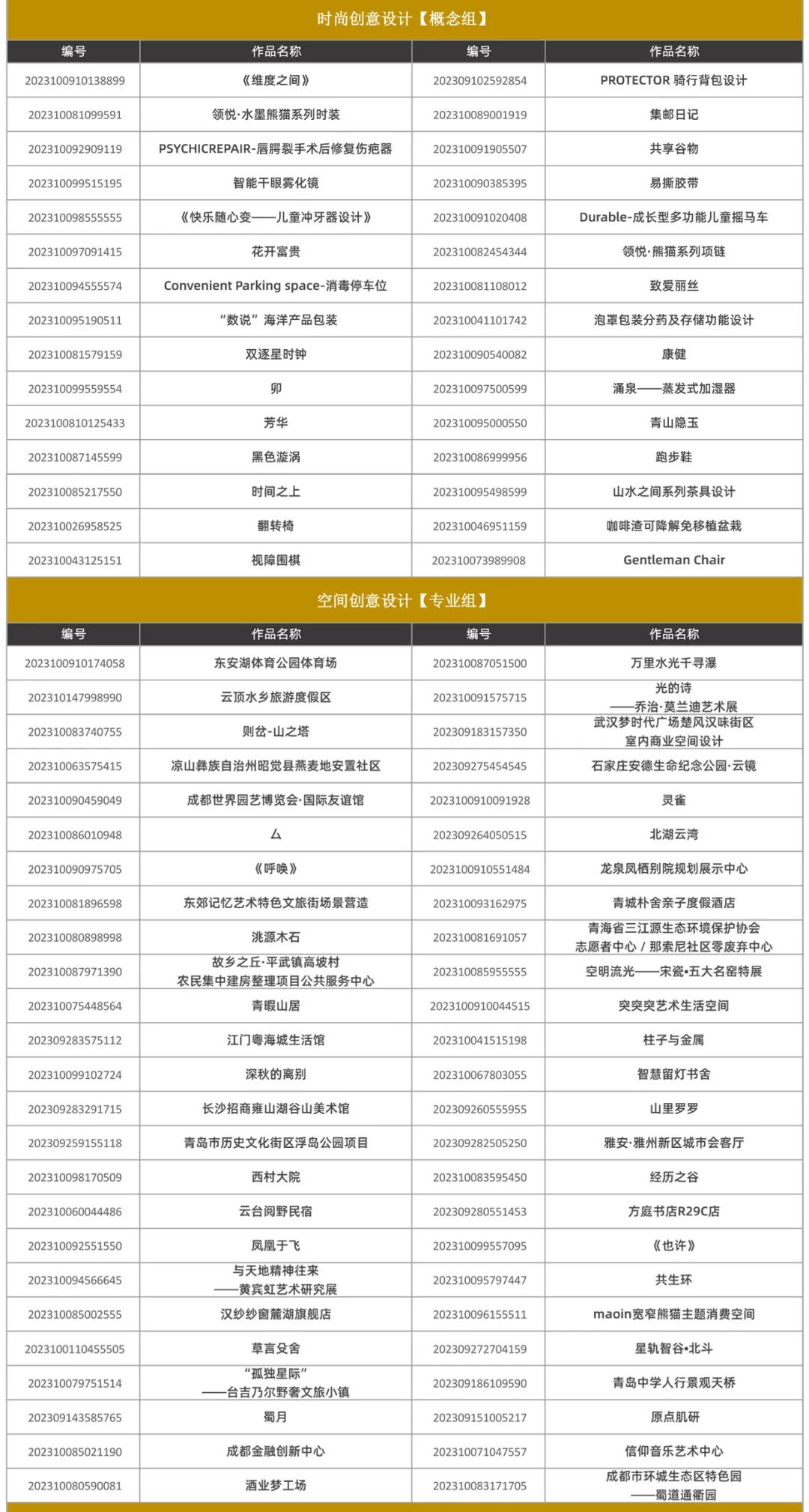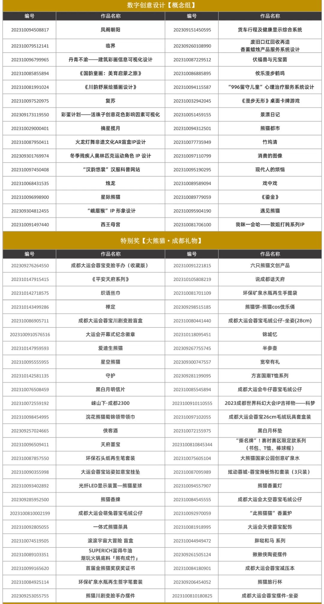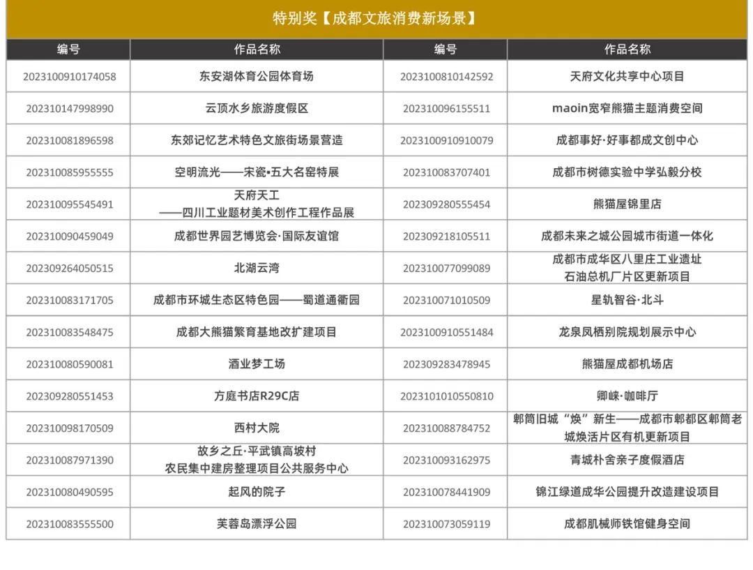 据悉,本届赛事终评结果将在11月举办的2023金熊猫天府创意设计奖颁奖典礼现场公布,最终获奖作品也将在“第十届成都创意设计周”展会现场面向观众正式亮相,集中进行展览。