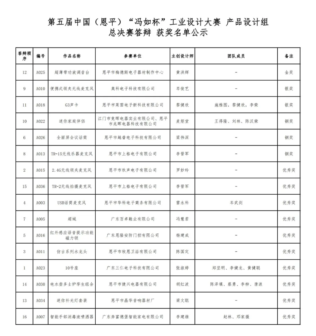 第五届中国(恩平)“冯如杯”工业设计大赛 优秀奖颁奖
