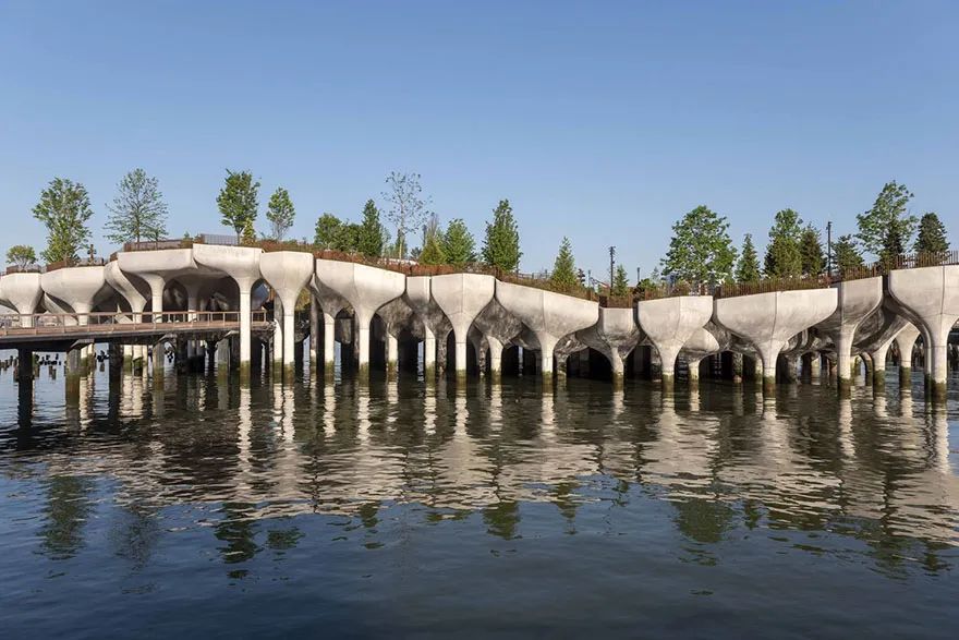 Little Island 是一个公共公园,庇护着哈德逊河上的三个新的表演场所。它被设计成人们和野生动物的天堂,是一个绿色的绿洲,被雕塑般的花盆托在水面上,从曼哈顿下西区穿过跳板,只需很短的步行时间。