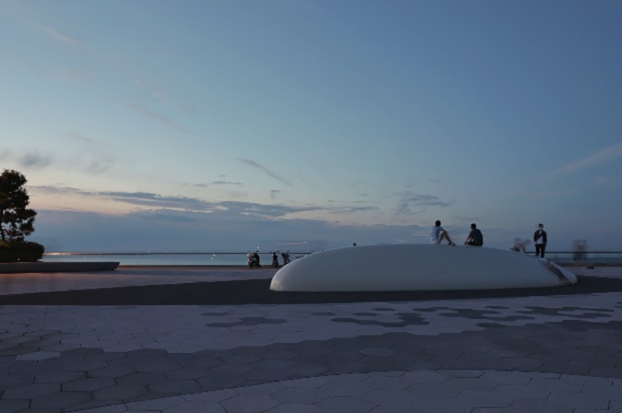 随着烟台金沙滩两个重要的市民公共休闲场所 - 浩沙广场和扬帆广场的建成开放,当地居民有了一个全新的玩耍场所,可以随意行走,驻足观看,玩轮滑,滑滑梯。金沙滩的海岸线由于尊重自然和以人为本的设计手法,能够展现大自然最美丽的馈赠。它也因更丰富的互动而有更生动的表达。