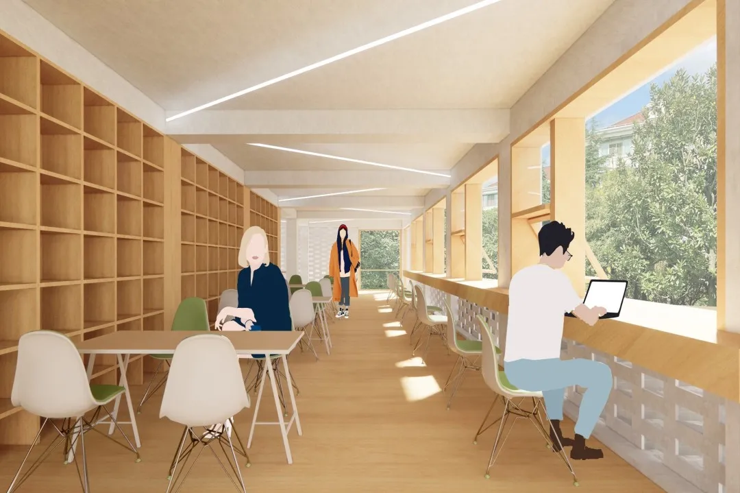 ▲驿站二层:可以欣赏环浜美景的阅读空间