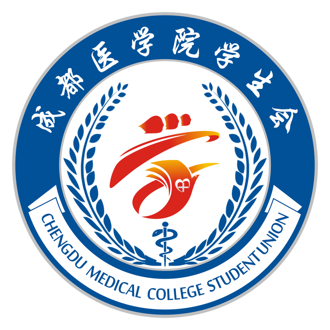 设计理念:色彩总体为蓝色系,以橙红色突出主题。采用环形结构,将成都医学院学生会中英文置于外环,内部为学生会的“学”字,“学”字三点意形为学生会成员,下面为医学之路与翱翔的鸟儿,鸟儿怀揣“救死扶伤”的仁医之心。“学”字周围配以麦穗、蛇杖,麦穗体现了青春活力的团学工作,而蛇杖则是医学的标志,象征着生命之星。