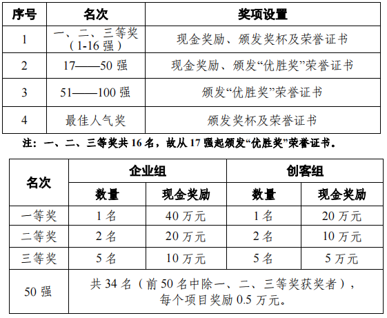 大赛组委会将对参赛项目、赛事组织单位分别设立奖项。